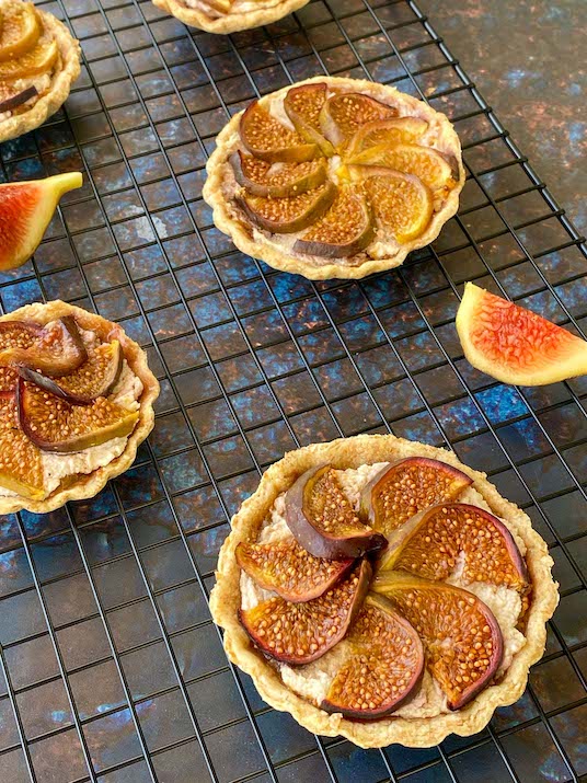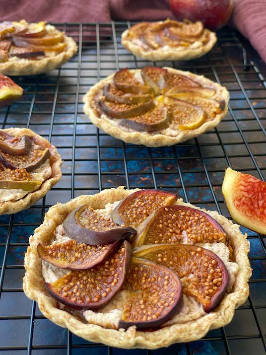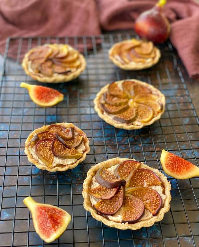 To make this fig tartlets vegan, sub the butter with some vegetable spread. Remove the ricotta and just use the jam and the fresh figs.
