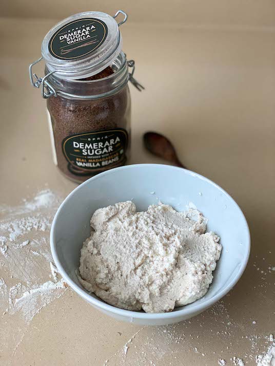 - Blend the ricotta by hand with 2 tbsp of demerara vanilla sugar.