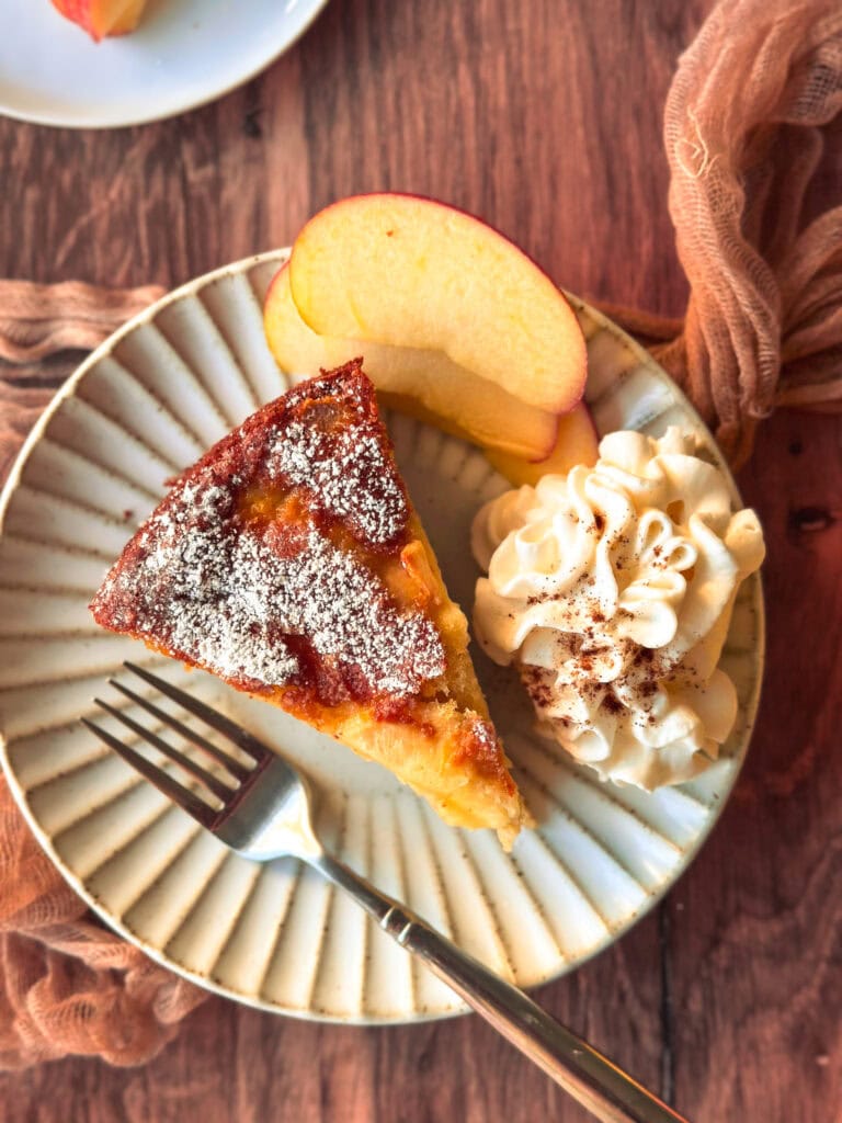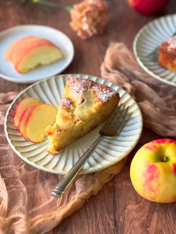 Apples (Golden + Honeycrisp): Golden apples bring natural sweetness and tenderness, while Honeycrisp adds structure and a bright, crisp bite. Use diced apples inside the batter for bursts of flavor and thin slices on top for a beautiful rustic finish. My grandma’s Giuliana was using a lot of apples, that she was patiently peeling and chopping. And the batter was so buttery, that every bite felt like I was eating only apples!