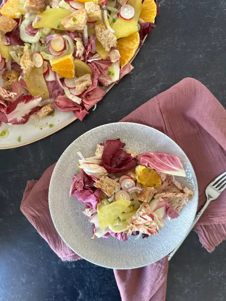 Winter Panzanella Salad: This is my seasonal twist on the classic Italian summer bread salad. In this version, hearty winter vegetables and robust flavors creates a dish that is both comforting and satisfying during the colder months.