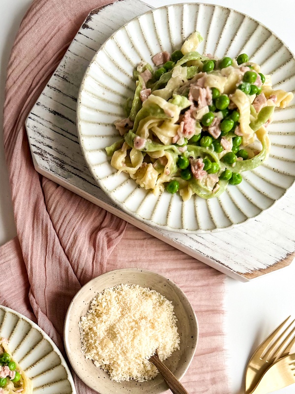 Paglia e Fieno is a traditional Italian dish originating from Siena. The name of the dish means straw and hay, referring to the green (spinach) pasta noodles as hay and the yellow (egg) pasta noodles as straw. The classic recipe calls for a sauce made with ham, peas, cream and Parmigiano reggiano, The result is a colorful and flavorful dish that has become a staple in Italian cuisine. In this article, we will explore the origins, preparation, and variations of straw and hay fettuccine in more detail.