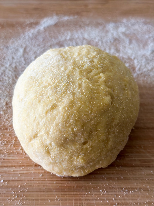 FOOD PROCESSOR METHOD: I choose to make the dough by hands as you need to feel the dough consistency into the hands while you knead it, you can use as well a food processor to make it faster. You will add the flour and then the eggs and you will pulse until everything is combined. You will need to add a few tbsp of water while the food processor is running to ease the dough to come together.