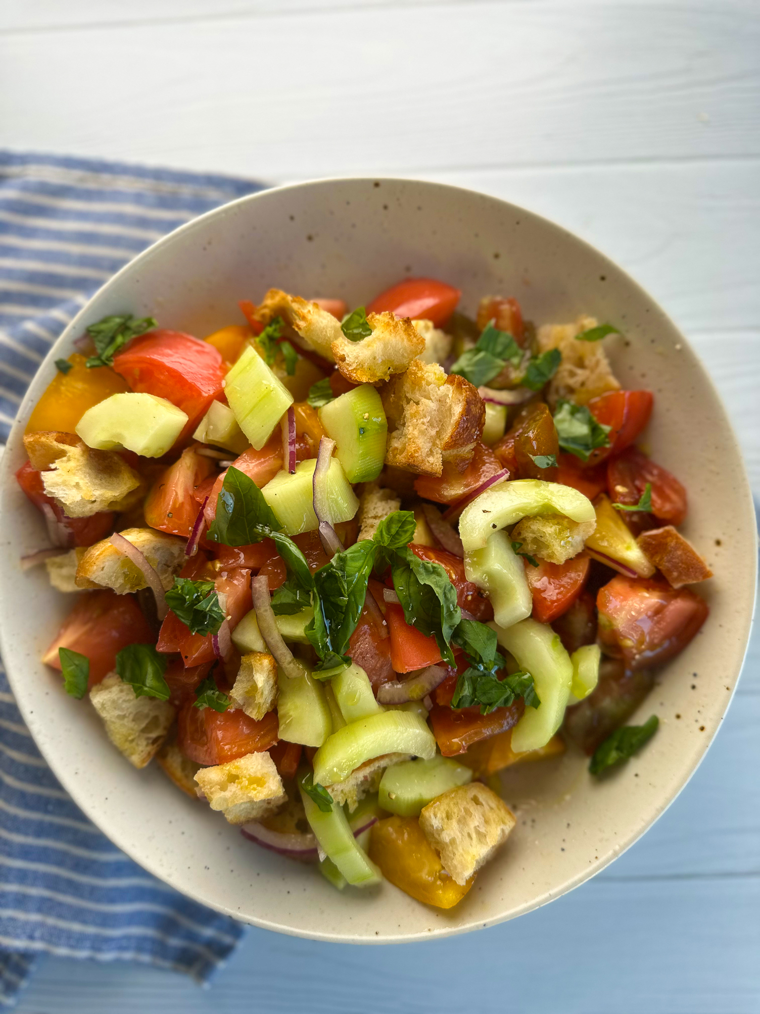 Keyword: Bread Salad, Healthy recipes, Italian Bread Salad, Mediterranean Ingredients, Panzanella Salad, Summer Recipe, Summer Salad, Tomato Bread Salad